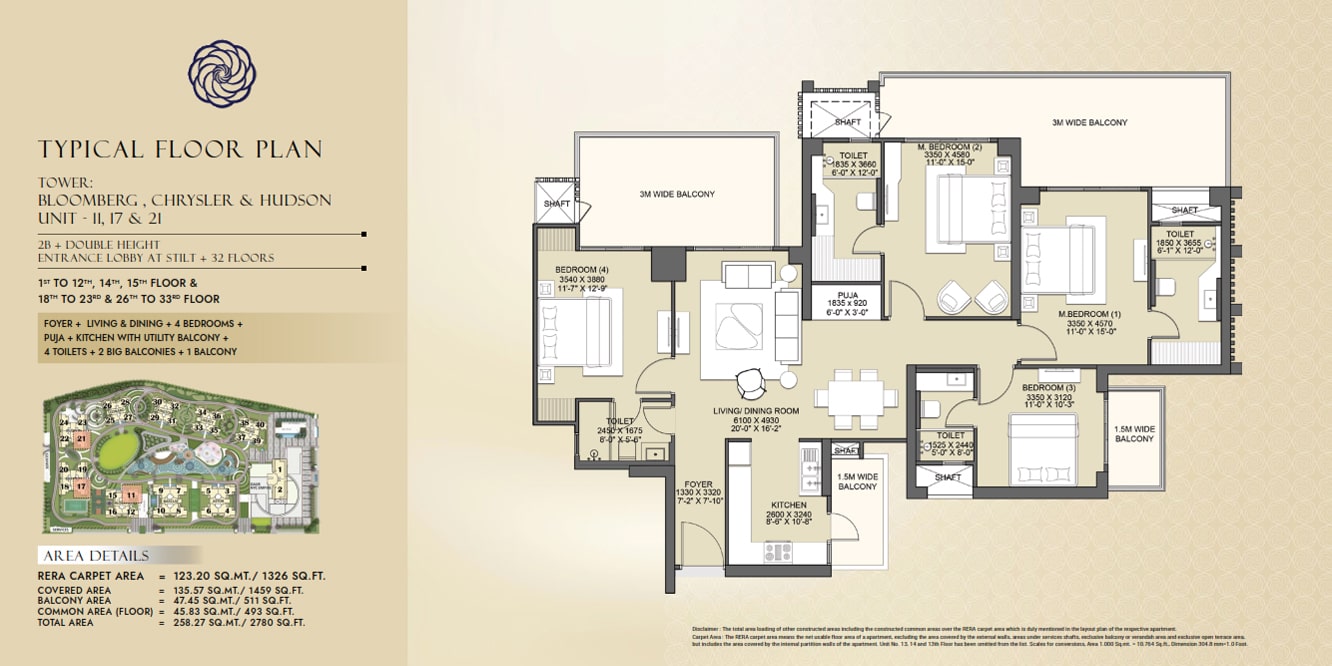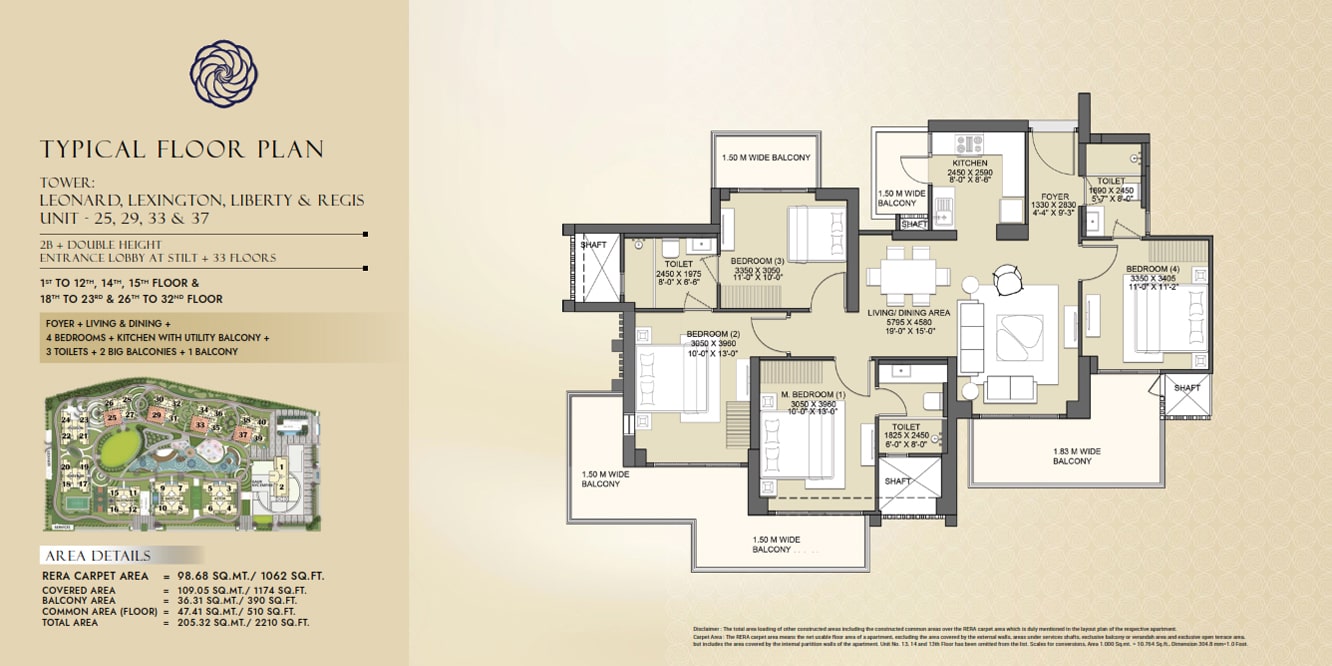 The size of this uber luxury project ranges from 2210 Sq.Ft. to 3365 Sq.Ft. This best residential project offers various premium amenities for the comfort life of the residents.